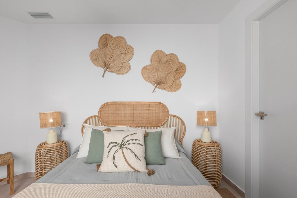 El proyecto consta de apartamentos de estilo ibicenco con 3 dormitorios y 2 baños, disponibles en planta baja con jardín privado, o planta alta con solárium privado. Todas las viviendas presentan una sala de estar de planta abierta con grandes ventanales que se abren a una terraza orientada al sureste. Los modelos de planta alta tienen escaleras internas que conducen al solárium, donde se puede disfrutar de las vistas panorámicas de los alrededores. El solárium incluye preinstalación para cocina de verano.